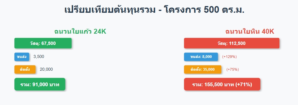 Total Cost of Ownership (TCO) Analysis โครงการ 1,000 ตร.ม. (10 ปี):