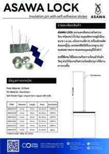 หนามเตยยึดฉนวนกันความร้อน ชนิดเทป (น้ำเงิน) หมุดผลิตจากอลูมิเนียม ขนาด 1.6 มม. แป้นจากเหล็ก GI เครื่องจักรผลิตส่งออกญี่ปุ่น เทปอะคลิลิคได้รับมาตรฐาน IEC ทนต่อสภาพอากาศและทนอุณหภูมิได้ 85ºC