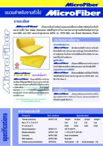 MicroFiber เป็นฉนวนใยแก้วชนิดม้วนแบบไม่มีวัสดุปิดผิว (PLN)และแผ่นเนื้อฉนวนใส่สารพิเศษป้องกันน้ำและความชื้น Non Water Absorption ผลิตขึ้นรูปจากโรงงานตามมาตราฐานผลิตภัณฑ์อุสาหกรรม มอก.486, มอก.487 และมาตรฐานสากล ASTM, UL, NFPA 90A, EN13501-1